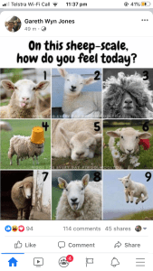I made the sheep-scale as a way to check in on my sheep and wool mates in a fun way, ask #RUOK & actively listen to the answer.