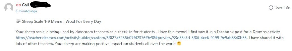 Your sheep scale is being used by classroom teachers as a check-in for students…I love this meme! I first saw it in a Facebook post for a Desmos activity