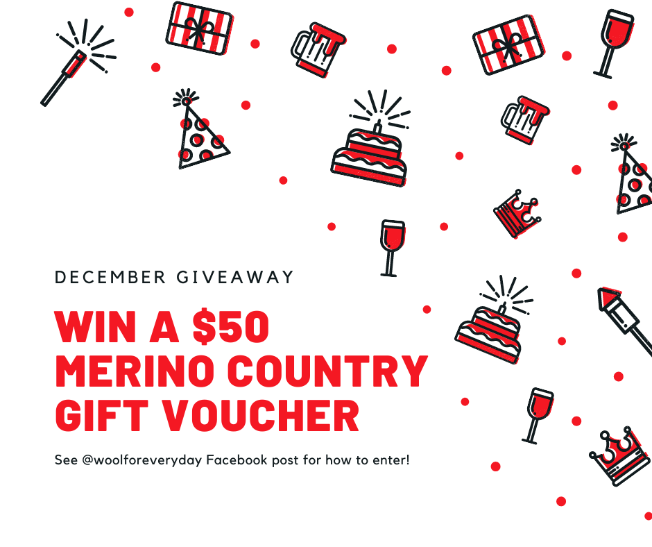 T & C’s – December giveaway closes and winner announced Monday 21st December. The winner will be announced via Wool For Every Day Facebook post. $50 AUD Merino Country gift voucher can be used worldwide. This competition is in no way endorsed or run by Facebook.